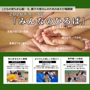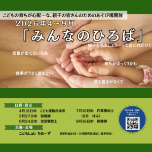 【募集】「みんなのひろば2026年4月 ~ 9月」育ちに心配のある1・2歳児親子の皆さんに遊び場を提供します!
